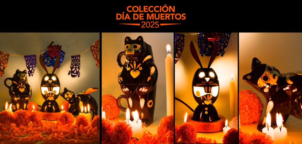 Colección limitada inspirada en el Día de Muertos: tres piezas hechas a mano en cerámica y madera, que combinan simbolismo ancestral con estética contemporánea. Cada objeto es un tributo a la memoria, al arte y a la vida, creado con respeto y dedicación.